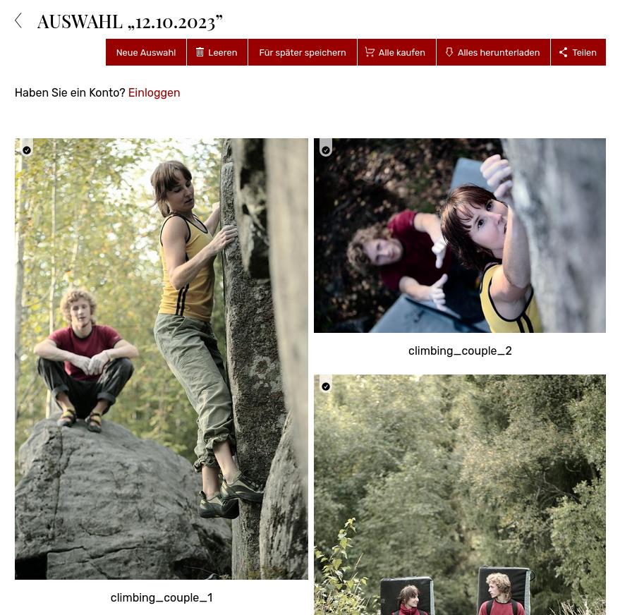 Wenn ein eingeloggter Kunde eine Auswahl teilt, muss sich der Empfänger einloggen, um sie zu bearbeiten (jeder, der den Link hat, kann die Auswahl sehen).