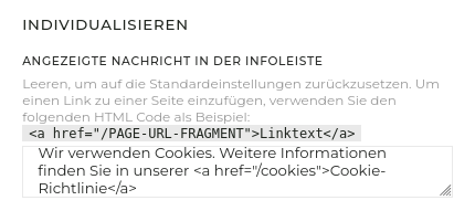 Individualisieren der Leiste für die Cookies-Zustimmung und der Cookie-Richtlinie