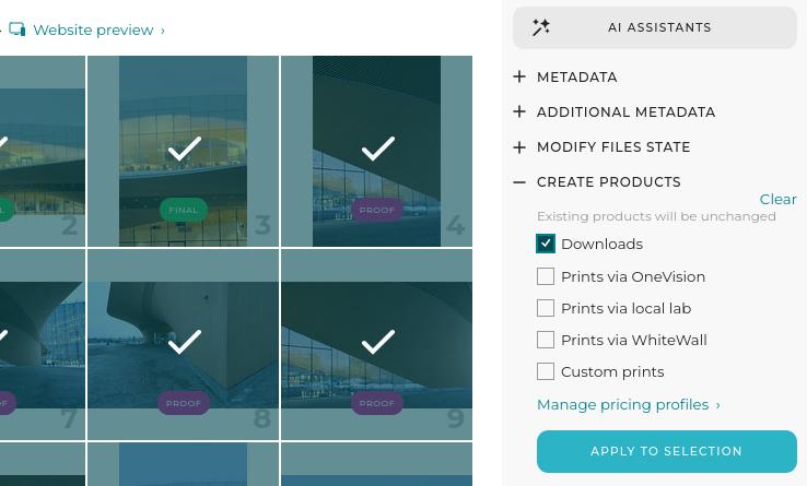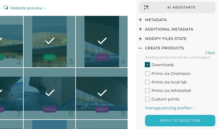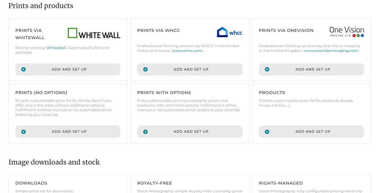 There are multiple pricing profile templates available to sell downloads, prints, stock photography, videos and documents, and all can be deeply customized.