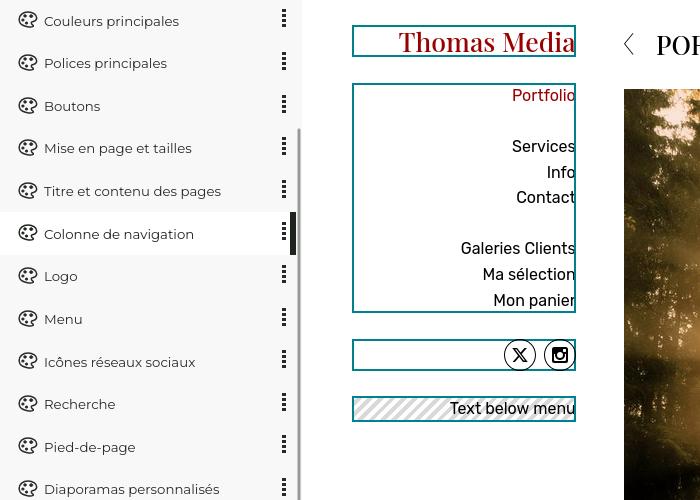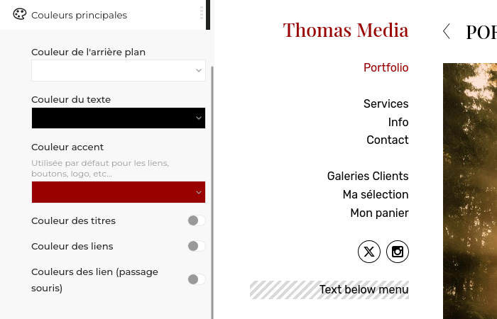 C’est également ici que vous personnalisez les composants qui forment la mise en page de votre site : logo, menu de navigation, couleurs, polices de caractères…